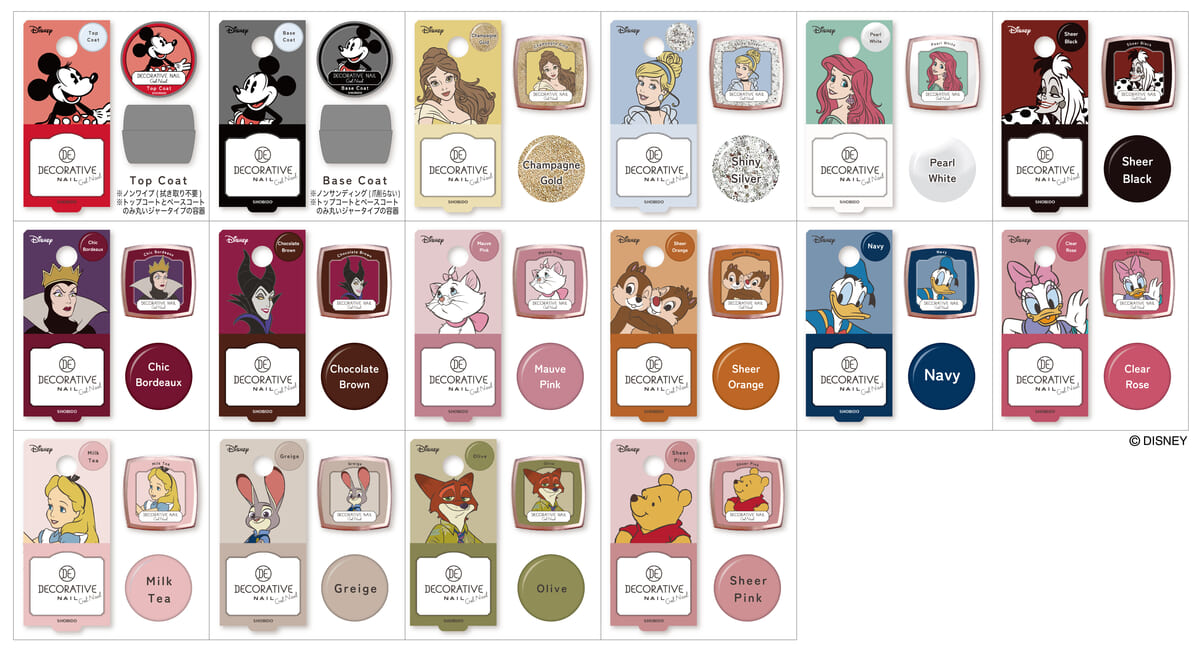 16人のディズニーキャラクターをイメージしたおしゃれなカラーが揃っています。