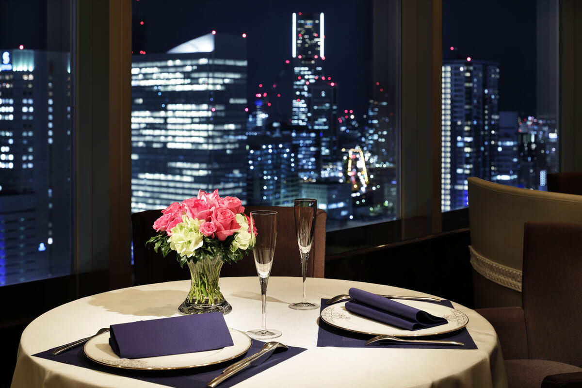 横浜の美しいナイトビューが眼下一面に広がるホテル最上階のレストランにて、ピアノの生演奏が流れる心地よい雰囲気の中、食材選びから調理工程に至るまで一つひとつ丁寧に仕立て上げたクリスマスだけの特別なディナーコースが堪能できます。