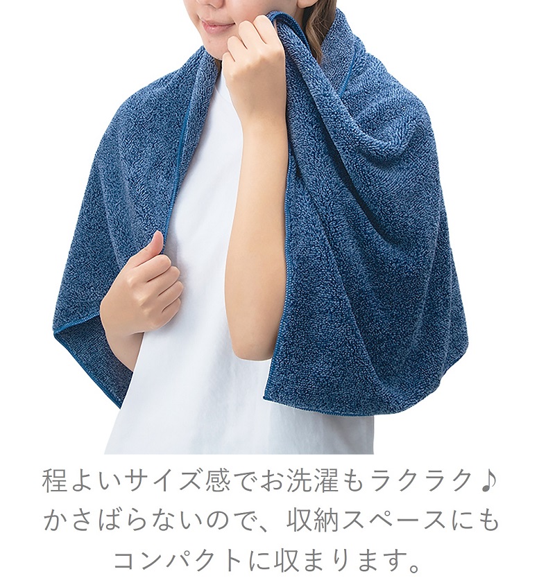 吸水力に優れた、コンパクトサイズのバスタオル。
