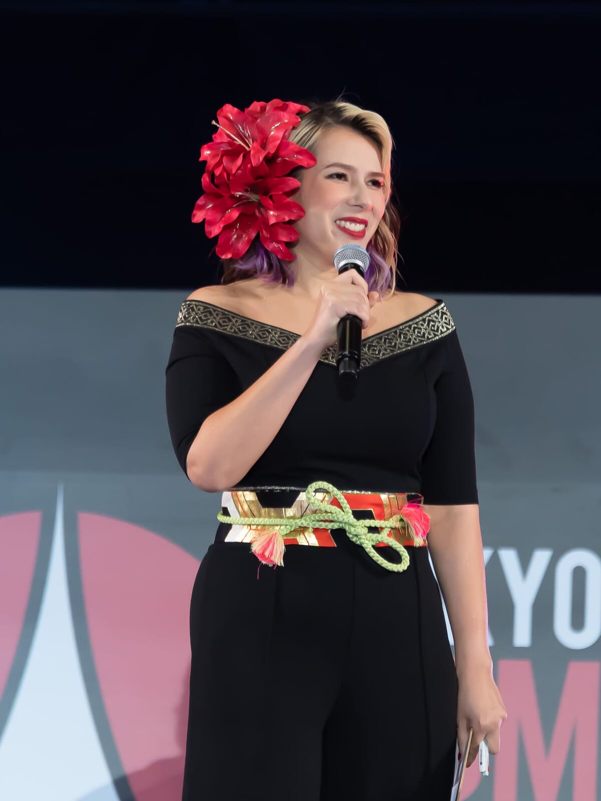 来日ゲストが揃ったところで、アンバサダーのAKIRAさんから、ジェイミー・キャンベル・バウアーさんとカレン・ギランさんにサプライズが。