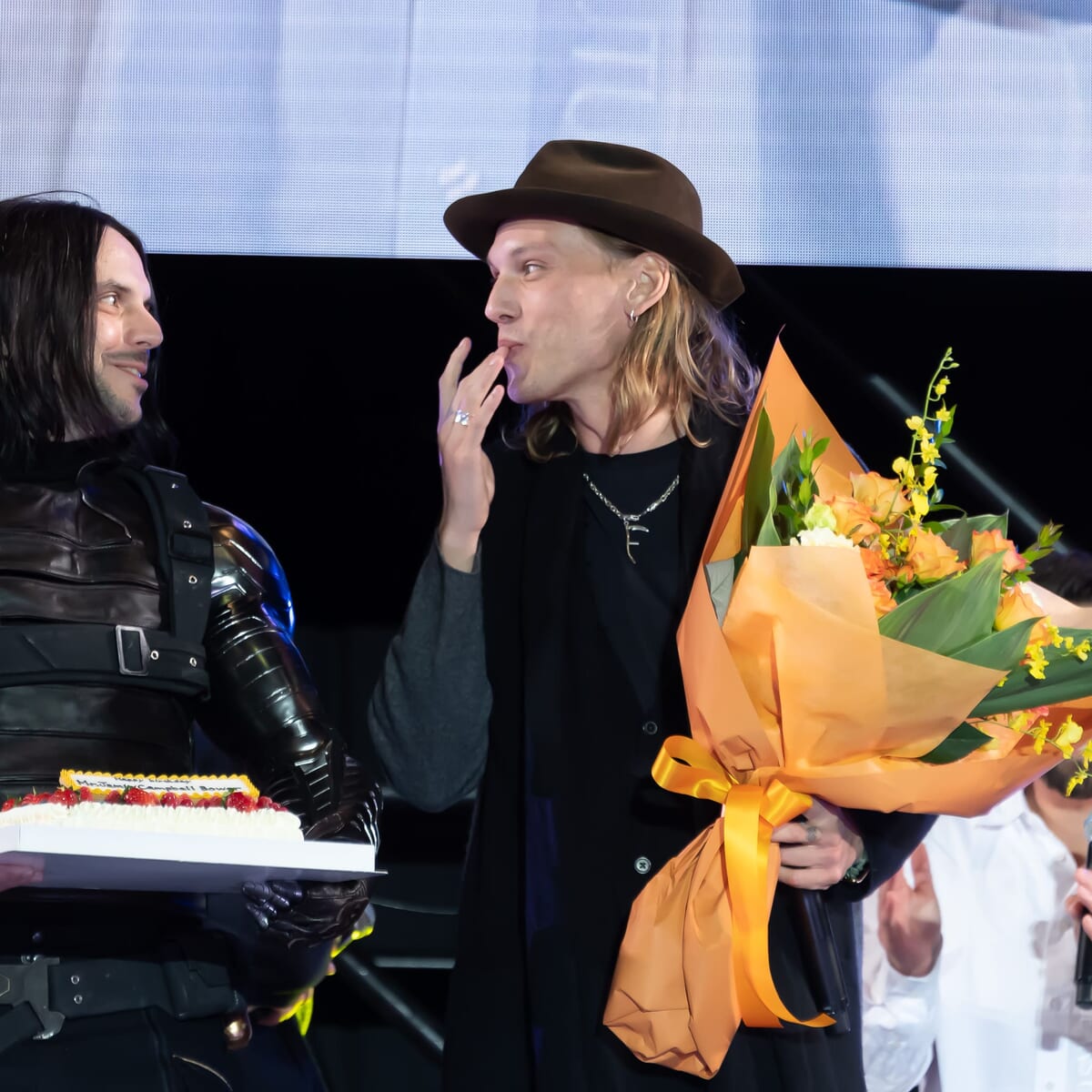 11月22日に誕生日を迎えたジェイミー・キャンベル・バウアーさんと、11月28日がバースデーのカレン・ギランさんに花束が贈呈されました。