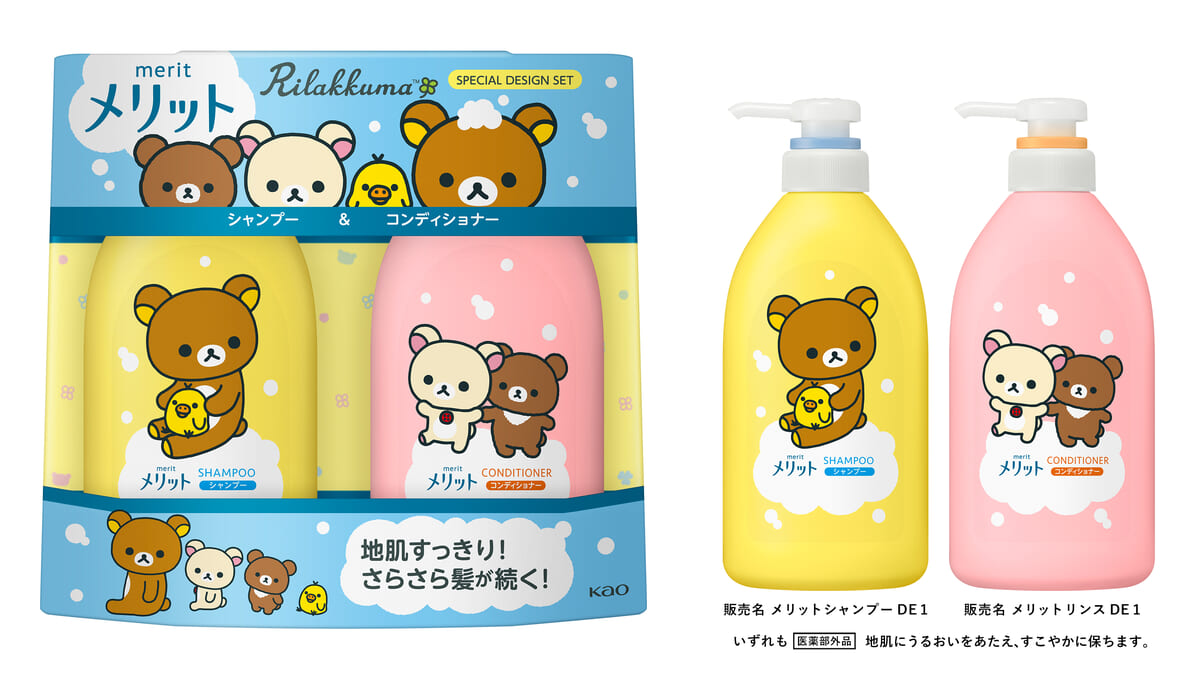 花王のヘアケアブランド「メリット」から、「リラックマ」のスペシャルデザインボトルが数量限定で登場!