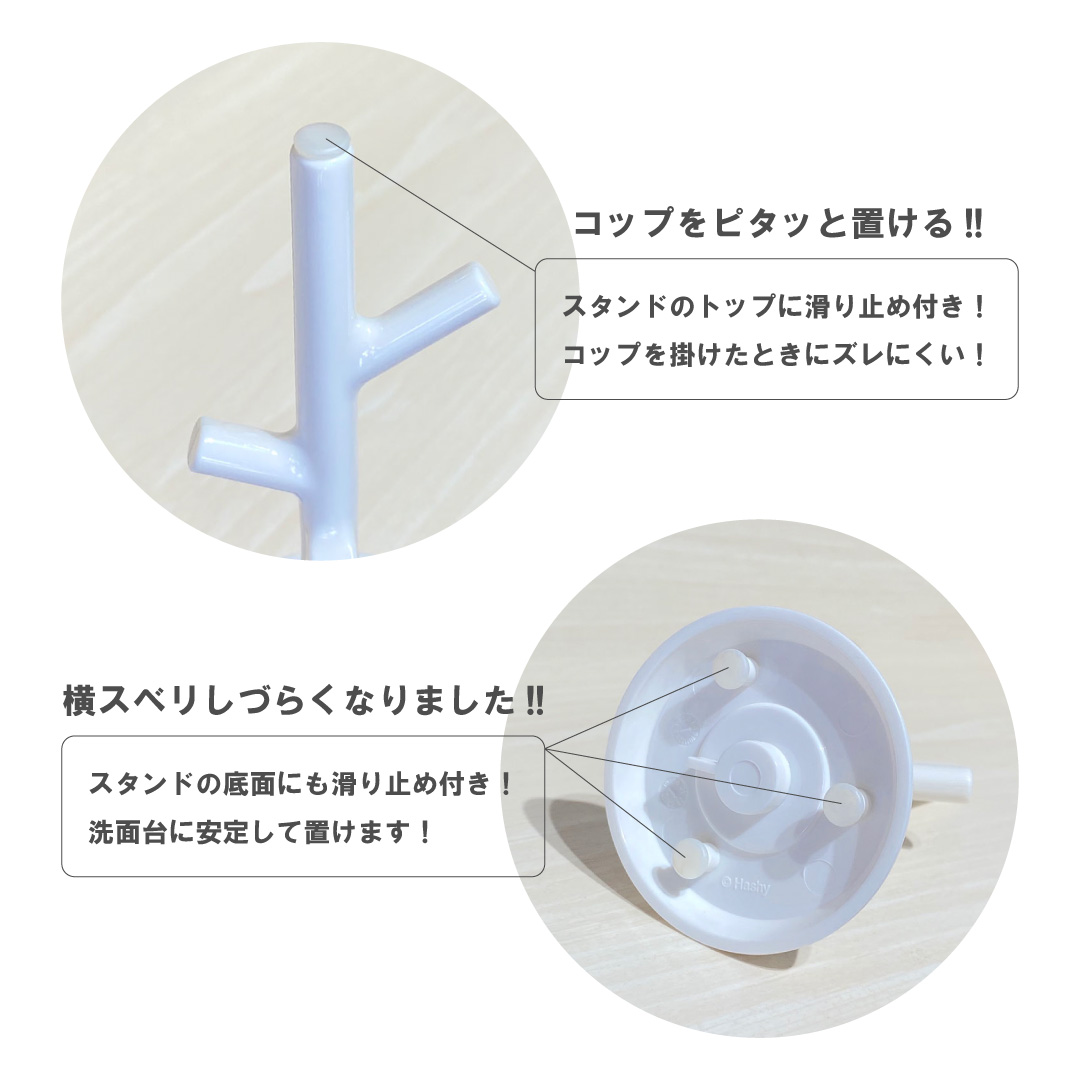 コップをかけても、洗面台に置いても滑りづらい仕様になっています。