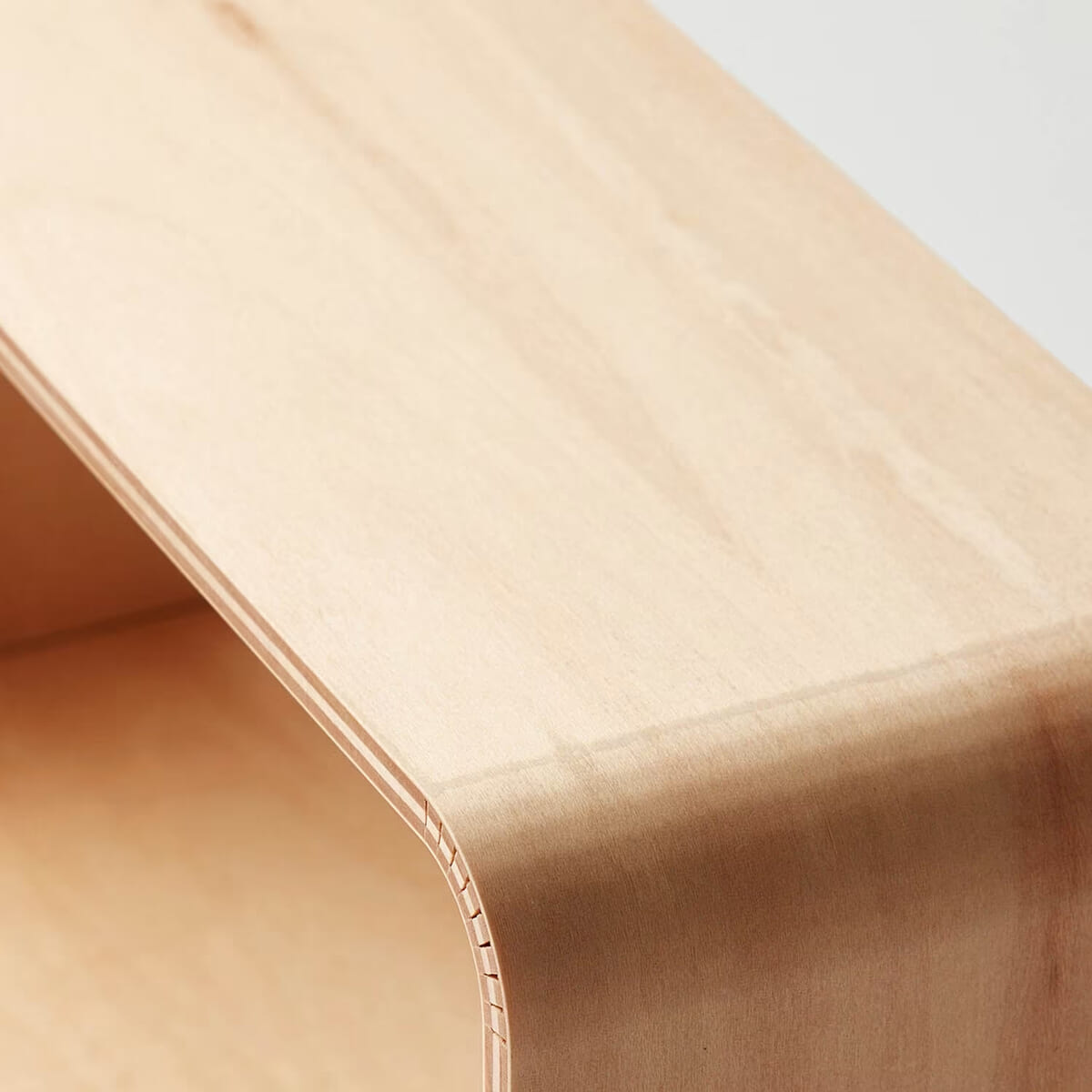曲げ木風に加工した、角に丸みのあるフォルムがポイント。