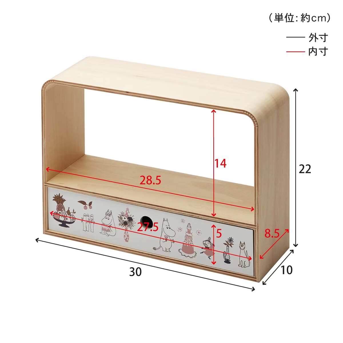 「ムーミン」たちのデザインがかわいい、引き出し。