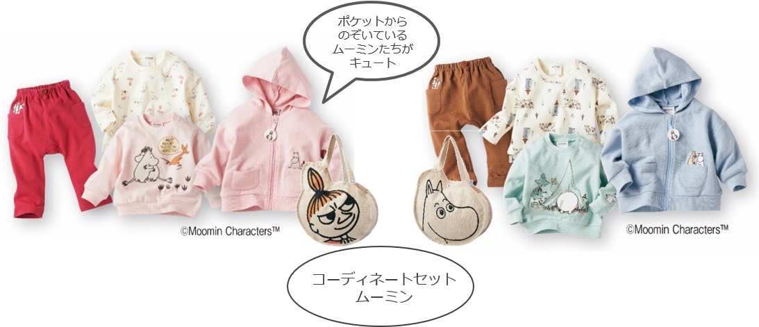 北欧の人気者「ムーミン」のベビー向けコーディネート5点セット。