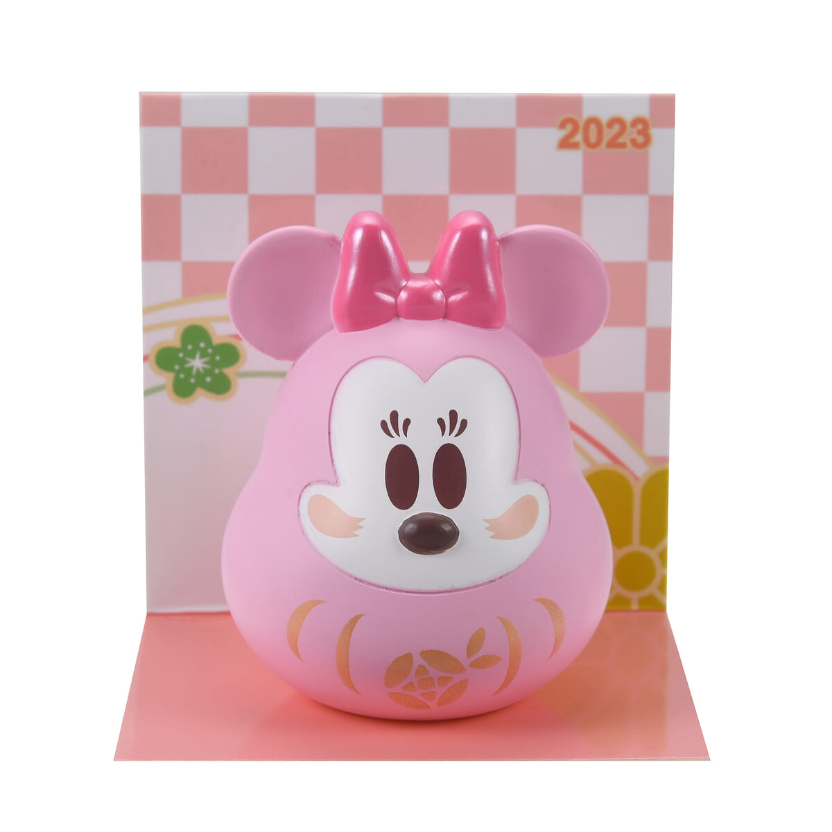 ガーリーなピンクカラーをベースにした、「ミニーマウス」のだるま風マスコット。