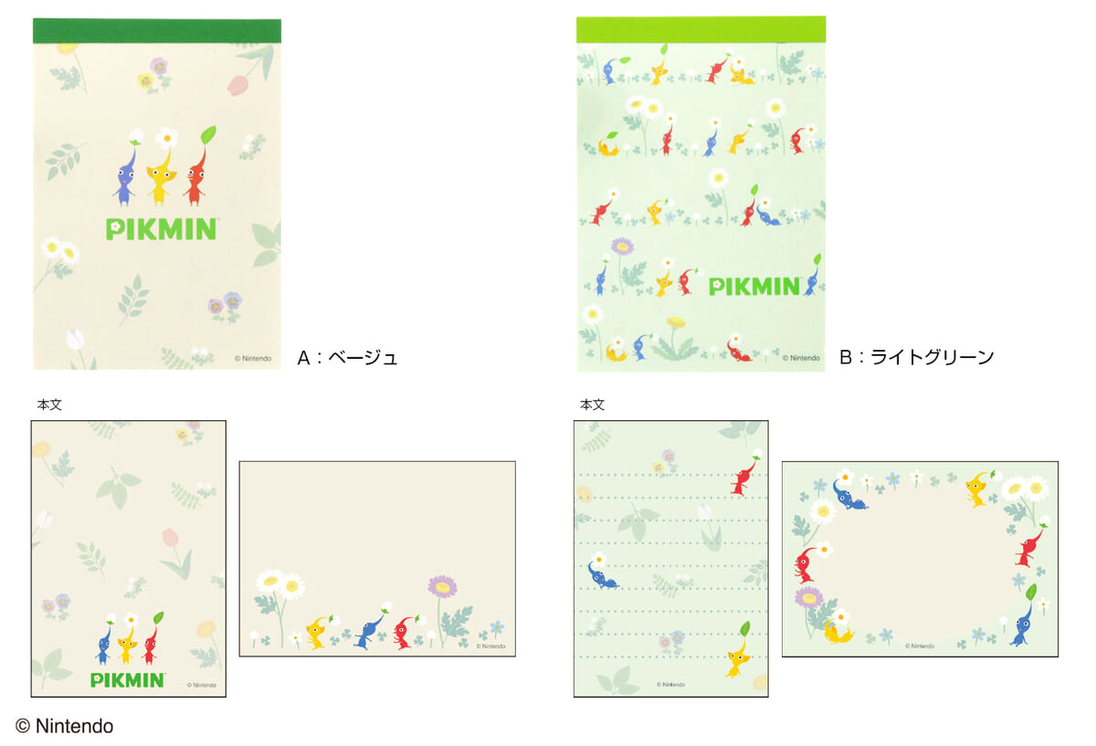 お花や植物など「ピクミン」の世界観と相性の良いモチーフを取り入れ、「ピクミン」たちが自然の中をワチャワチャと遊んでいる姿が落とし込まれたステーショナリーです。