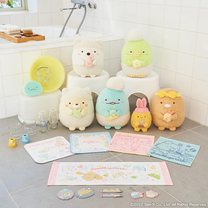 バスタイム中のゆったりまったりかわいい「すみっコ」たちの、お風呂で使えるグッズや、湯あがり後も楽しめるグッズがラインナップされています。