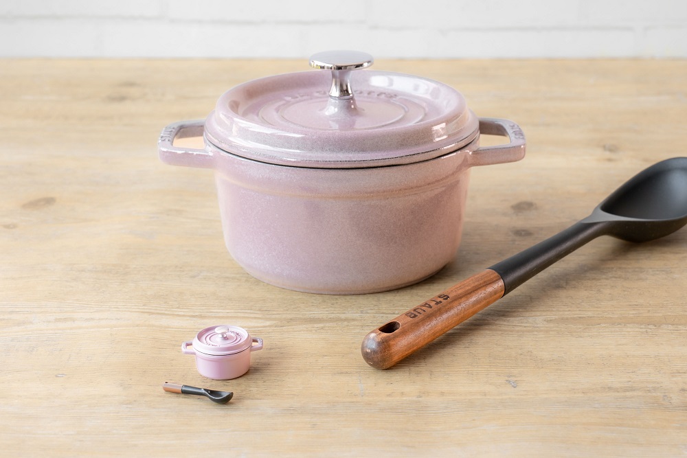おしゃれなデザインと使いやすさで人気のキッチンツール「サービングスプーン」や「しゃもじ」のミニチュアなどもあり、リアルなストウブの世界観をプチサイズで楽しめます!