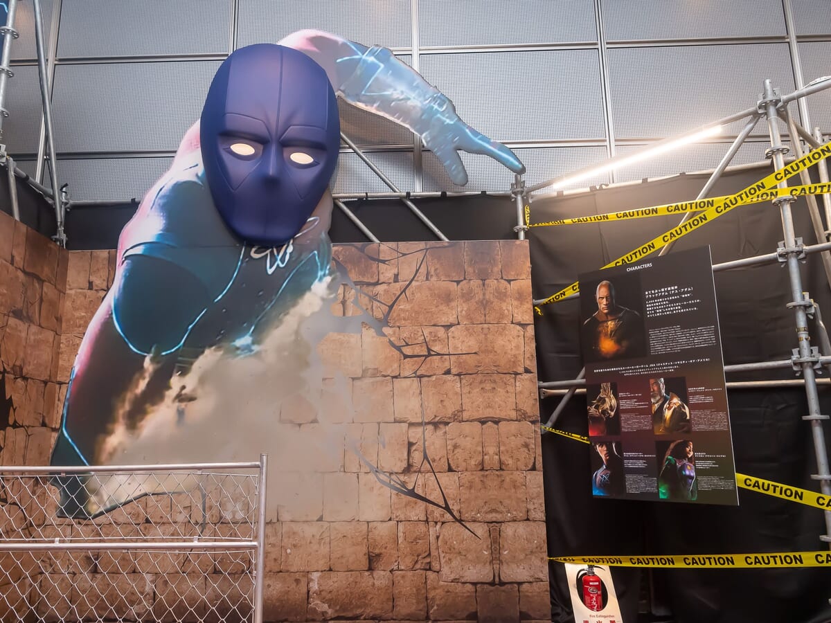 期間中は、2メートル超えのブラックアダムの等身大フィギュアや、劇中に登場する“テスの玉座”、アトム・スマッシャーの巨大オブジェなど、大迫力の展示が並びます☆