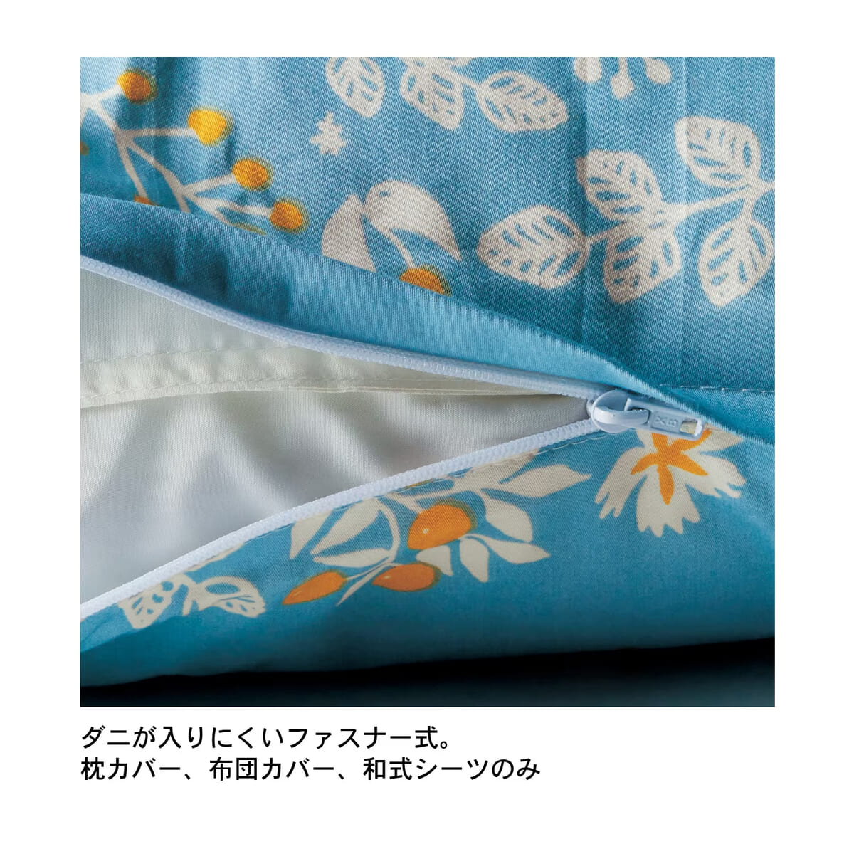 枕カバーと掛け布団カバーはファスナーとなっています。