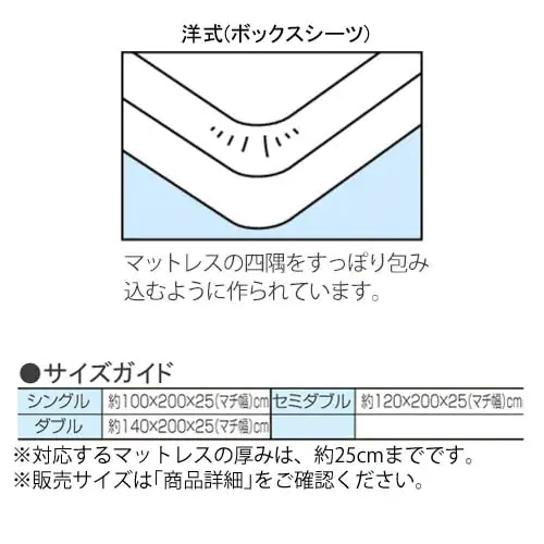 ボックスシーツは全周ゴム入り仕様です。