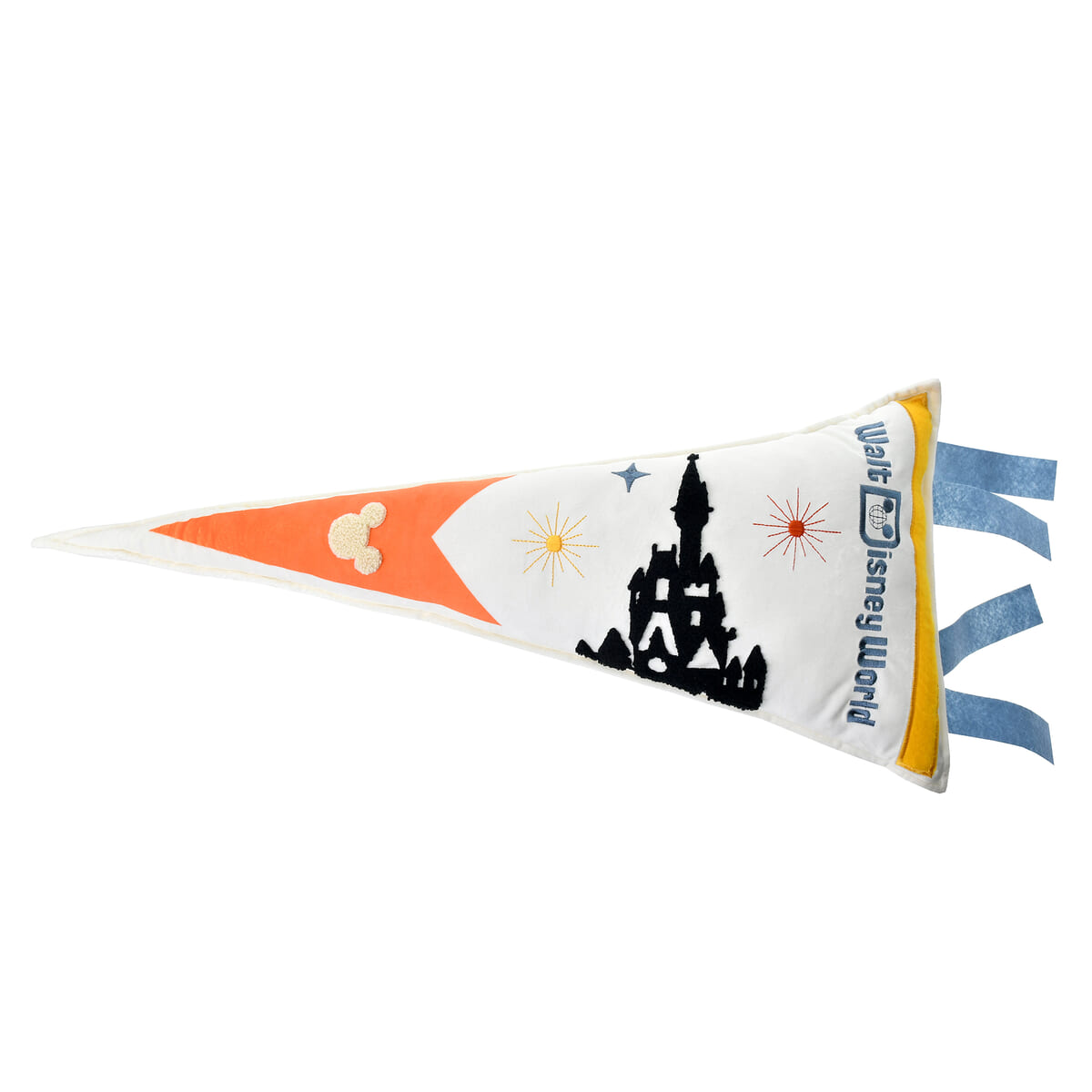 グーフィーとイヤーロゴがあしらわれた、まるでペナントのような細長い三角形クッション。