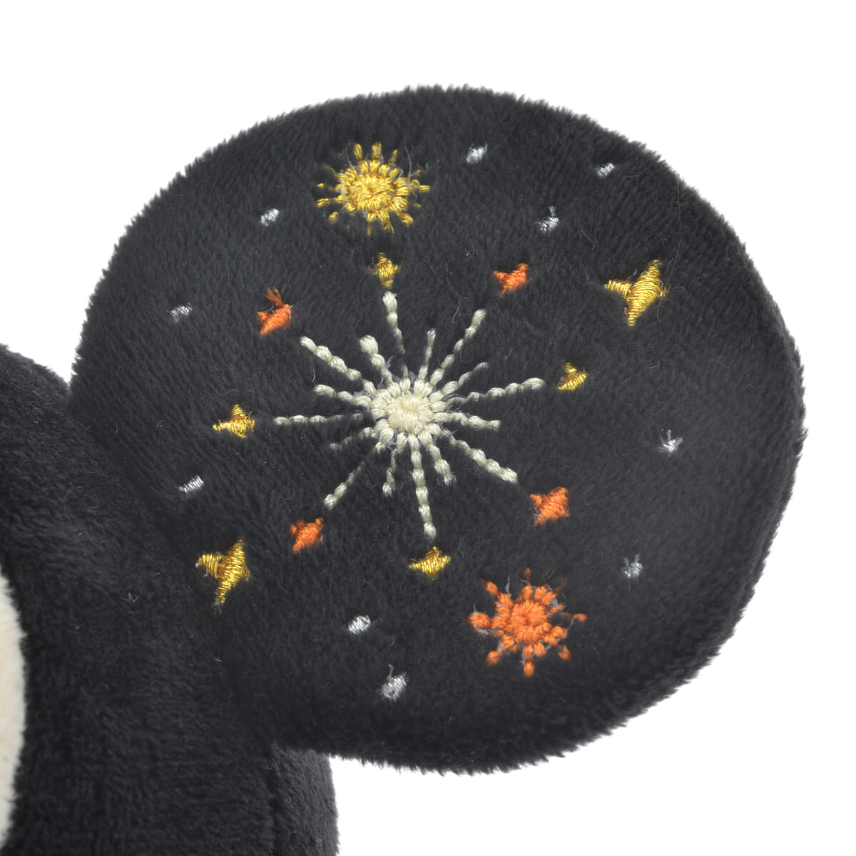 耳にカラフルな花火の刺しゅうが入った、祝いムード満点なディズニーグッズです☆