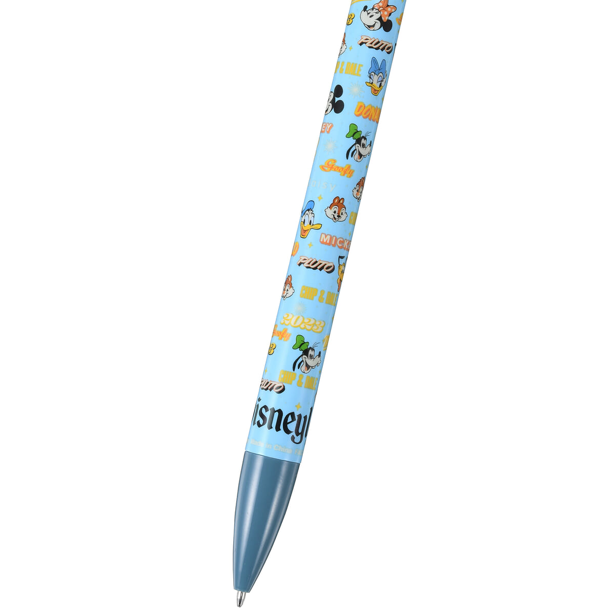 爽やかなライトブルーをベースにした軸に「ミッキー&フレンズ」が総柄で描かれています。