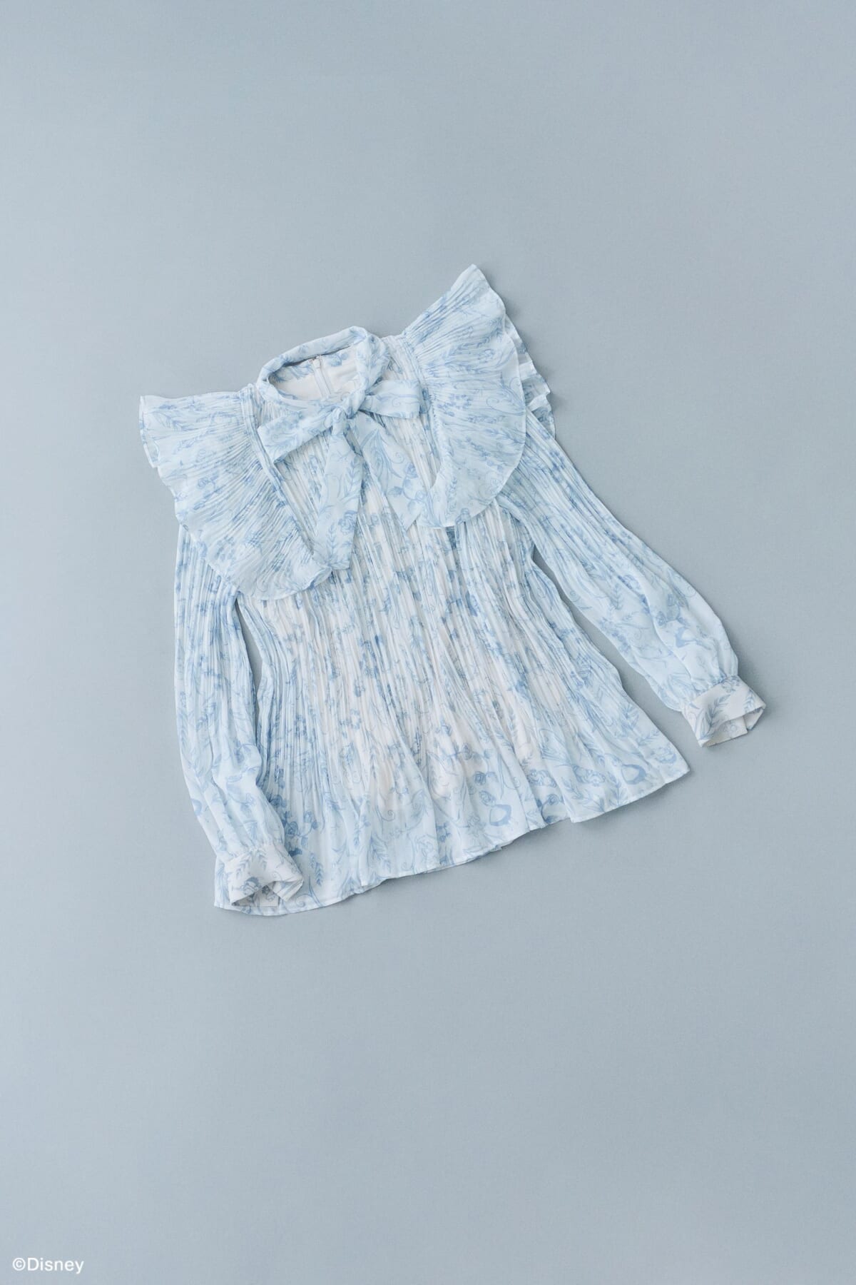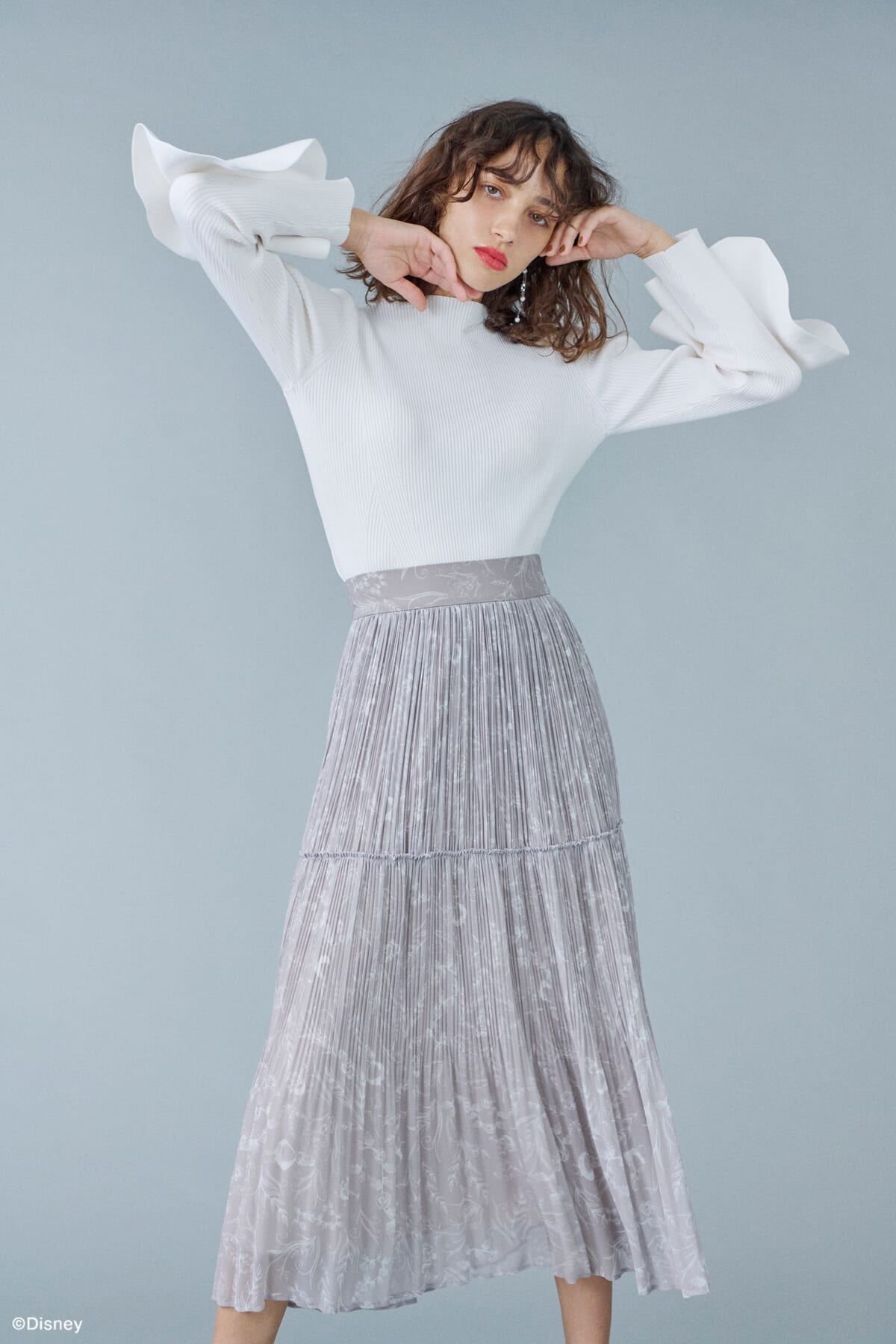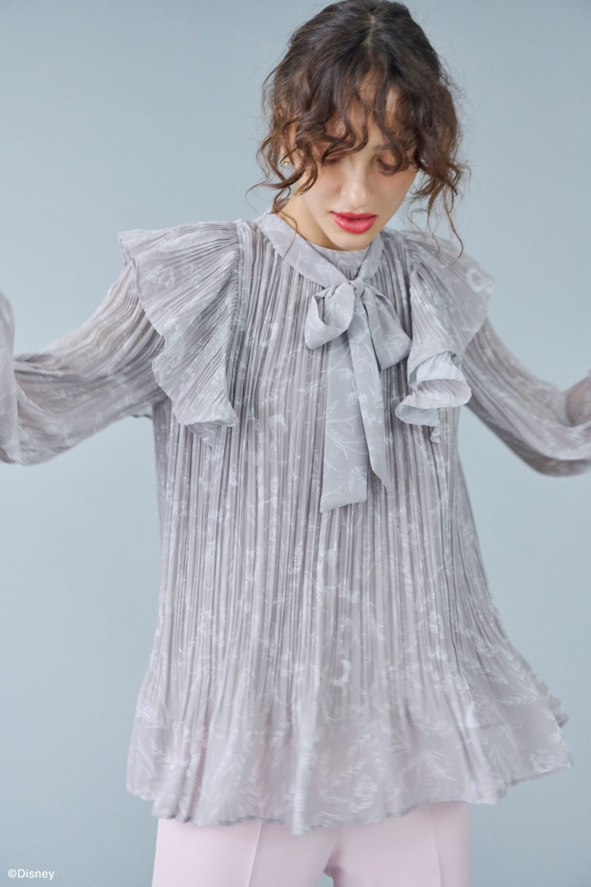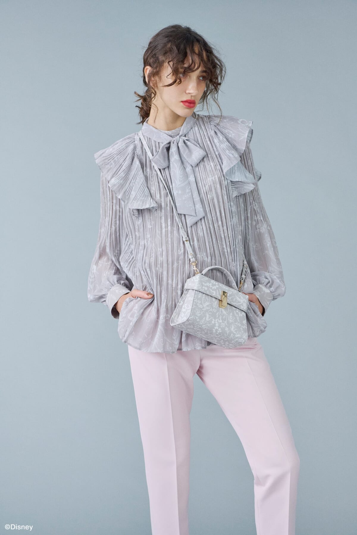 繊細なフリルやプリーツがより引き立つカラーなので、1枚で女性らしく知的に着こなすことができます。