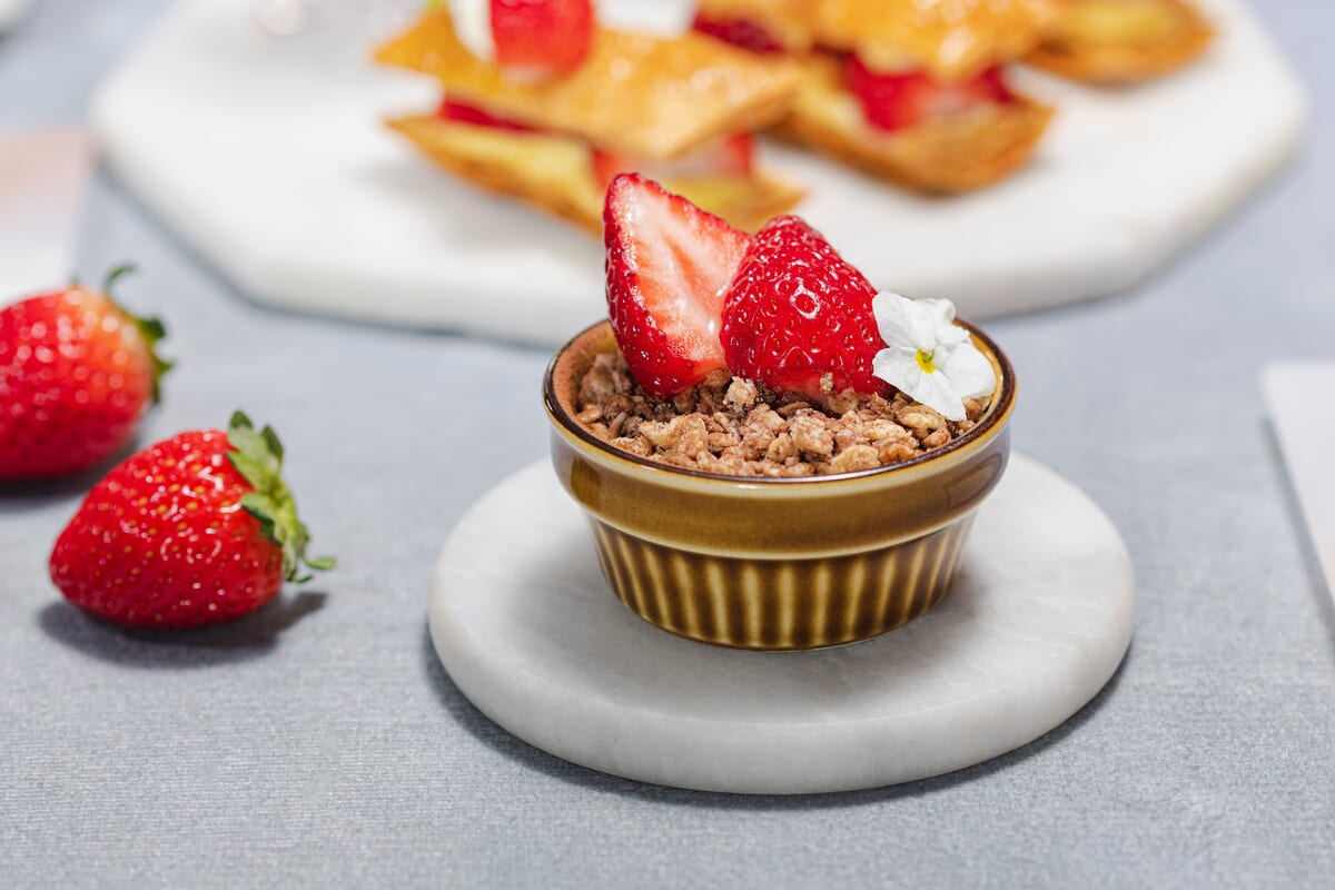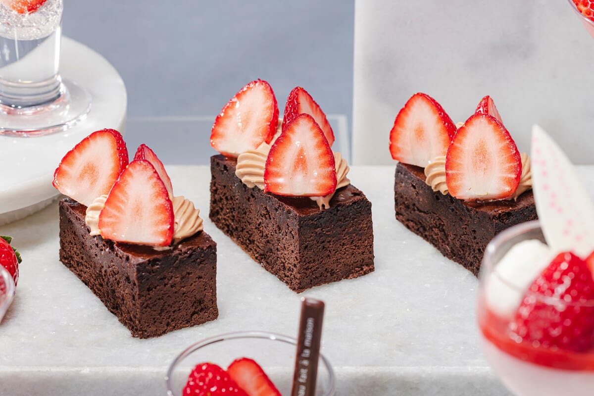 今回は「苺の王様」と呼ばれ、そのみずみずしい果肉と甘みが特徴のブランド苺、福岡産‟あまおう”を使用した贅沢なスイーツが揃います。