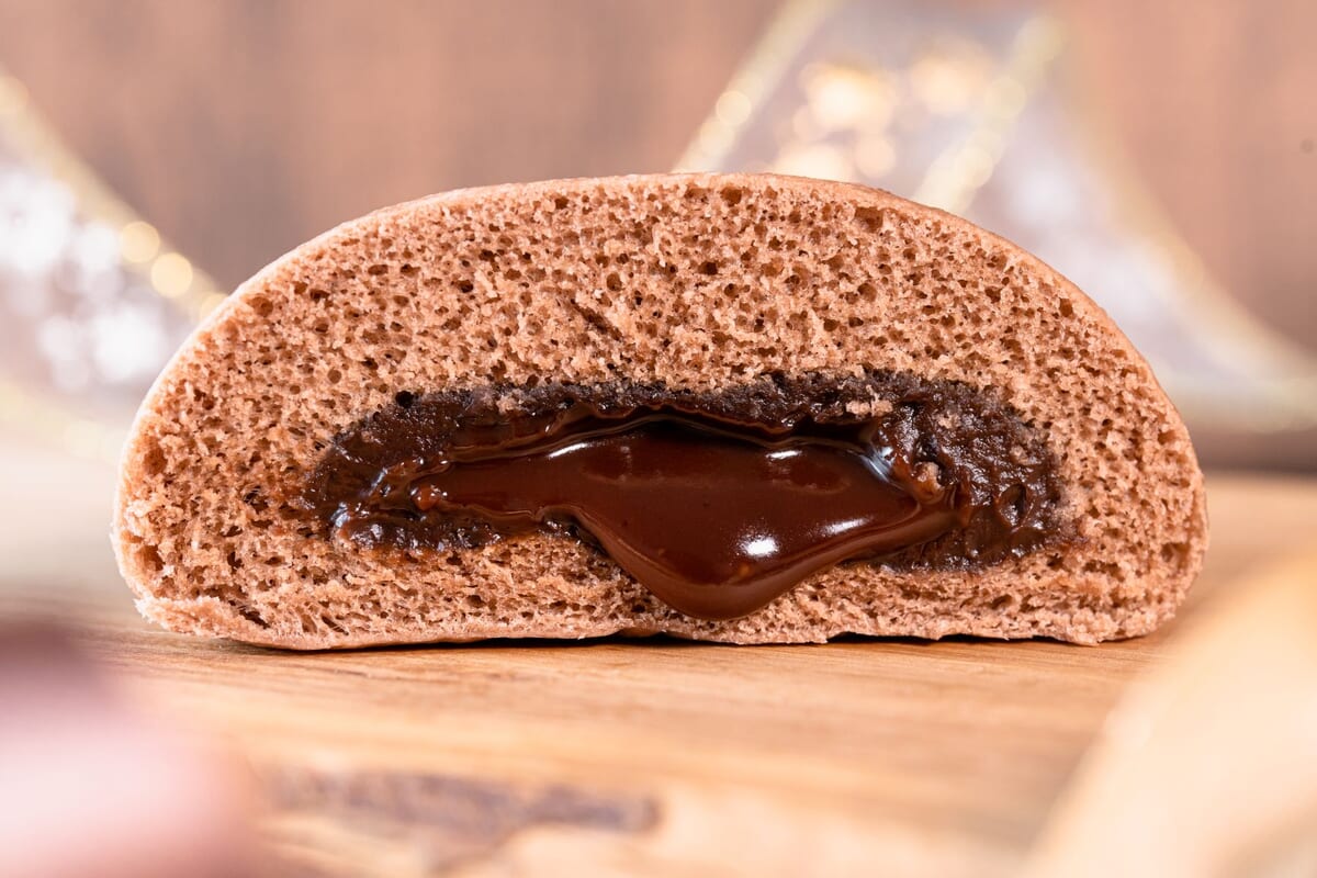 「とろ~り濃厚フォンダンショコラまん」は、卵と牛乳を使用しココアパウダーを練り込んだふわもち食感の生地に、2種類の固さの違うチョコレートソースを包み込んだ中華まんです。