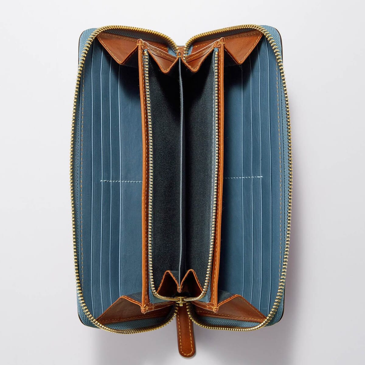 発色が美しく、使うほどに風合いが増す革製の長財布です。