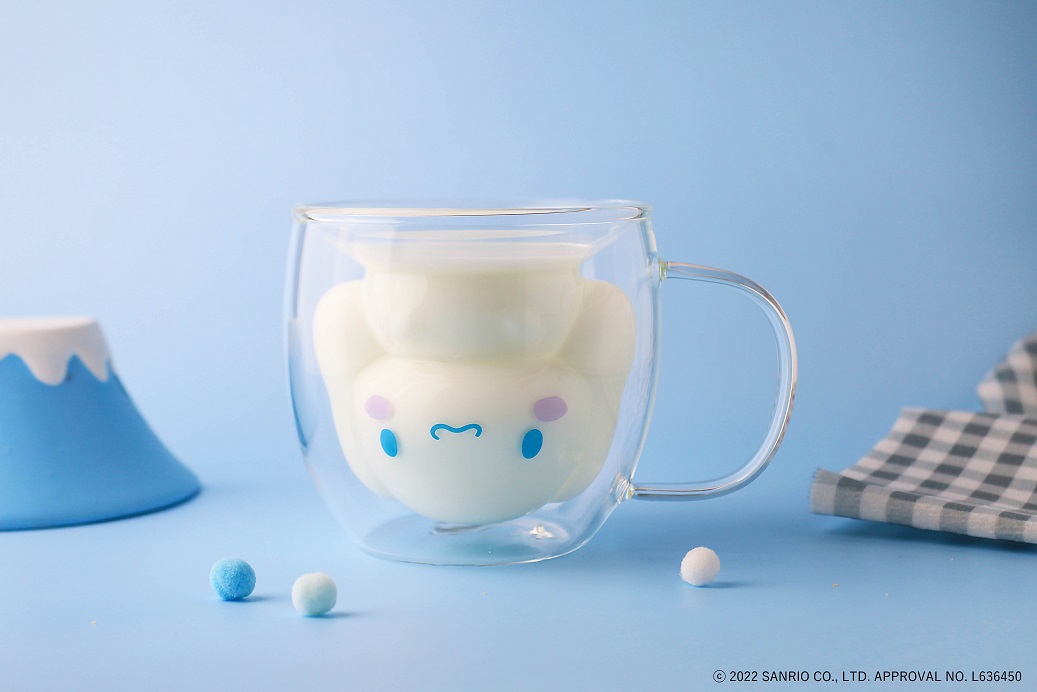 ドリンクを飲む度「シナモロール」の姿があらわれる、キュートなガラス製品。