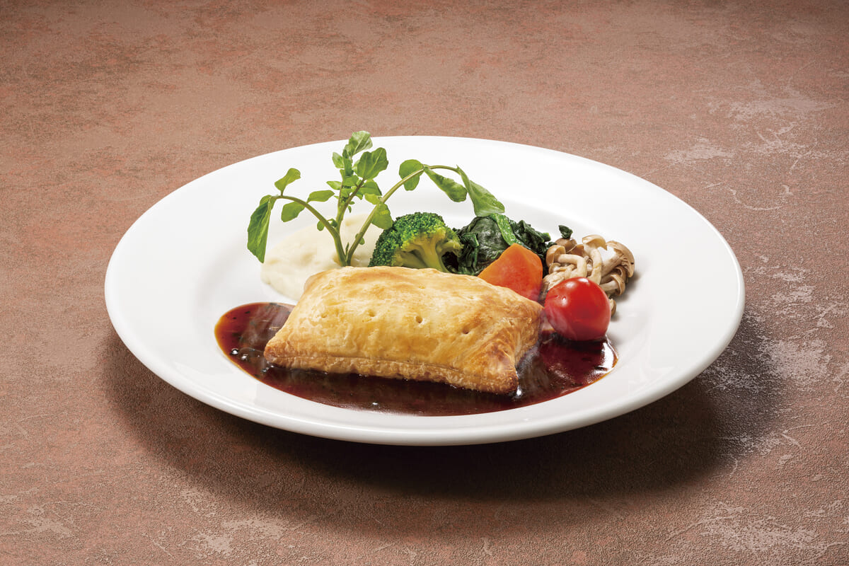 サクサクのパイとジューシーなお肉は相性抜群です。