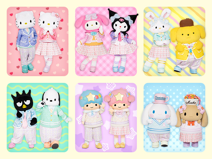 ハローキティ、ディアダニエル、マイメロディ、クロミ、ポムポムプリン、シナモロール、モカ、リトルツインスターズ(キキ&ララ)、ウィッシュミーメル、バッドばつ丸、ポチャッコたちが登場します。