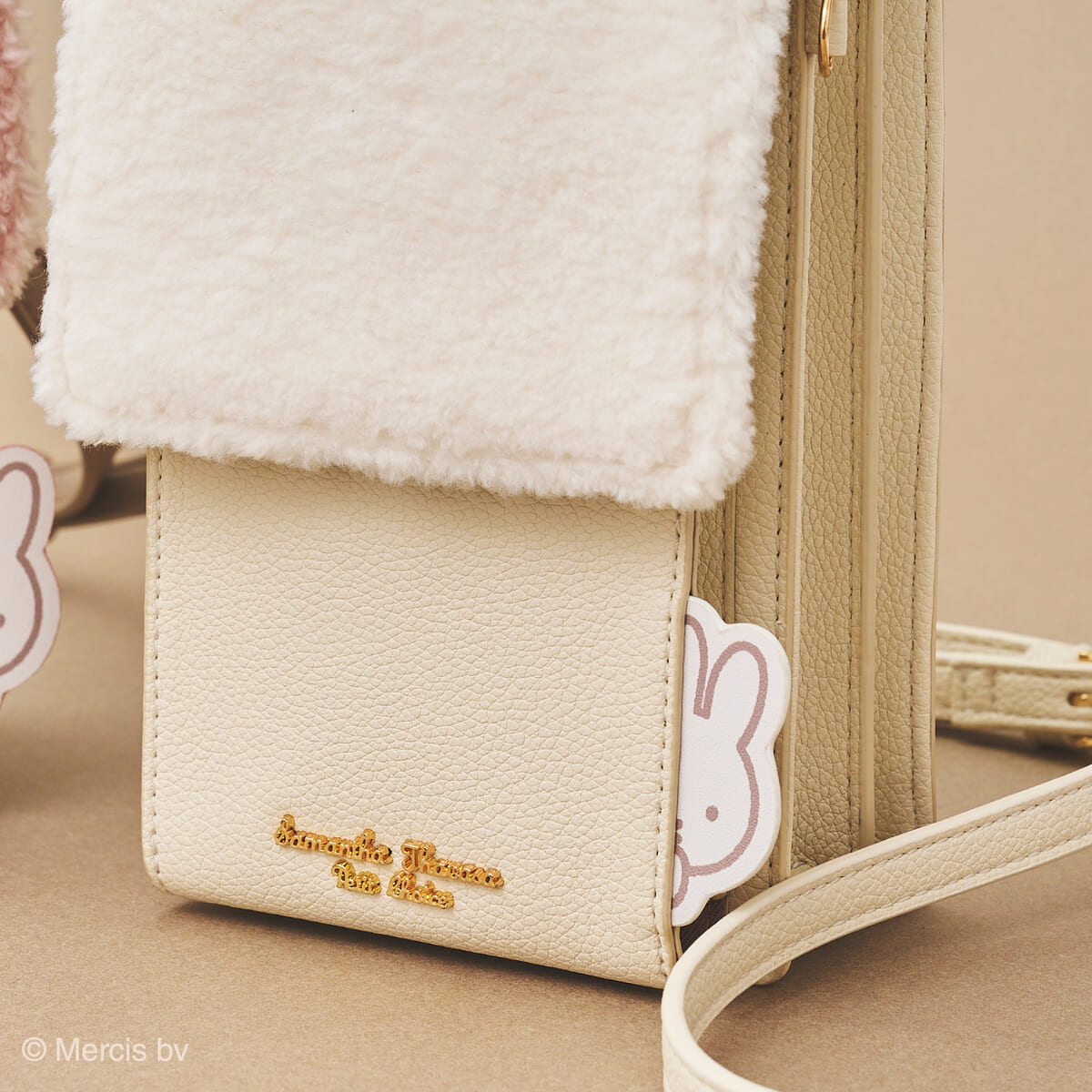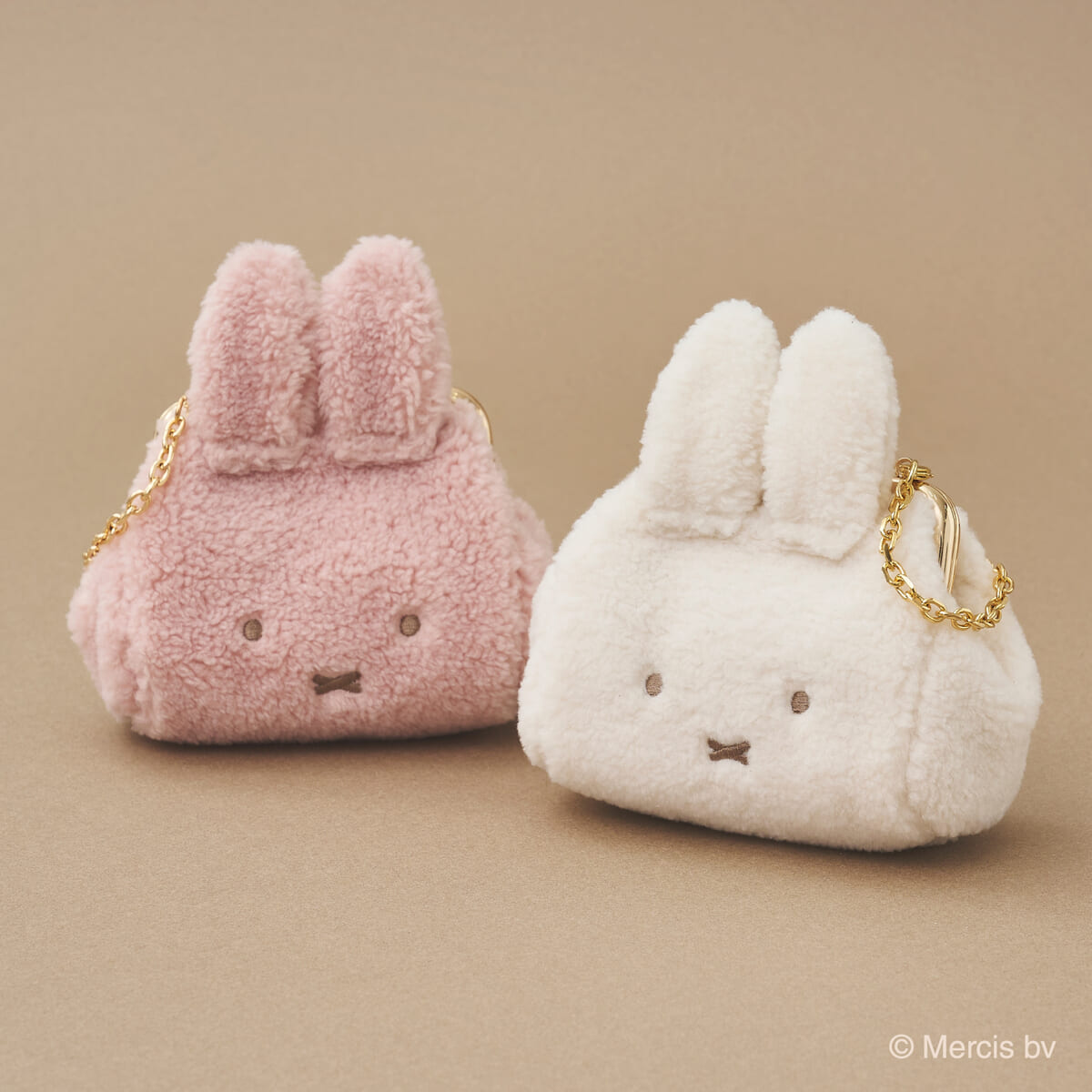 フラワーモチーフと「ミッフィー」をあしらった革小物や、フェイスデザインのボアコインケースなどは、手持ちのバッグの組み合わせも可能です。