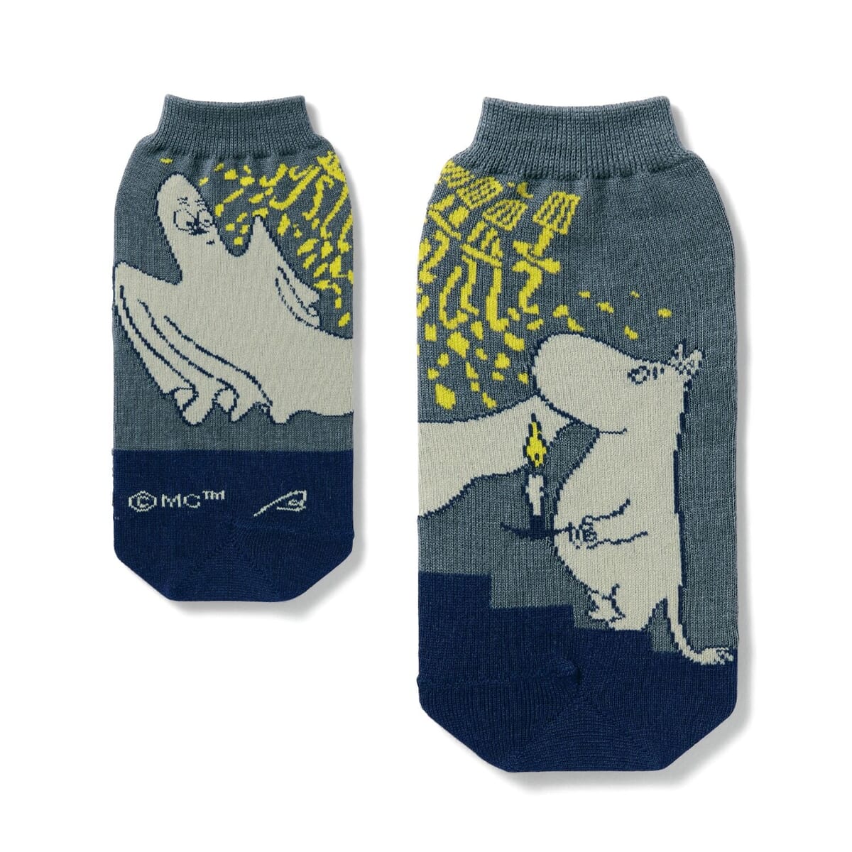 ろうそくの明かりを頼りに、おばけを追う「ムーミン」のデザイン。