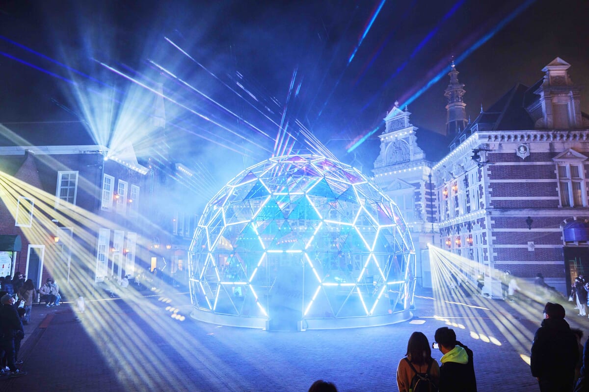 広場のドームを中心とした光と音のイルミネーションショー。