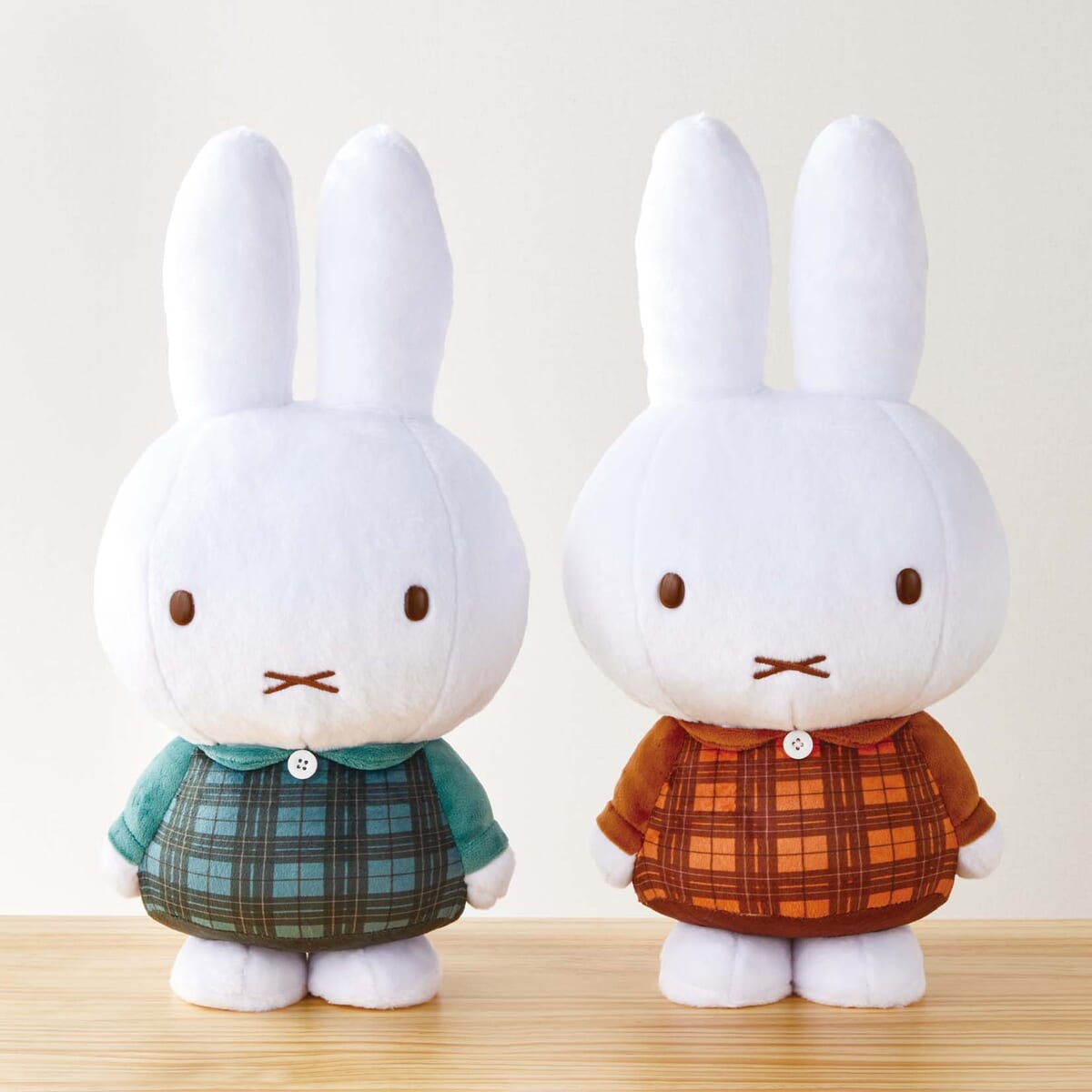 タータンチェック柄のワンピースを着た「ミッフィー」のぬいぐるみ。