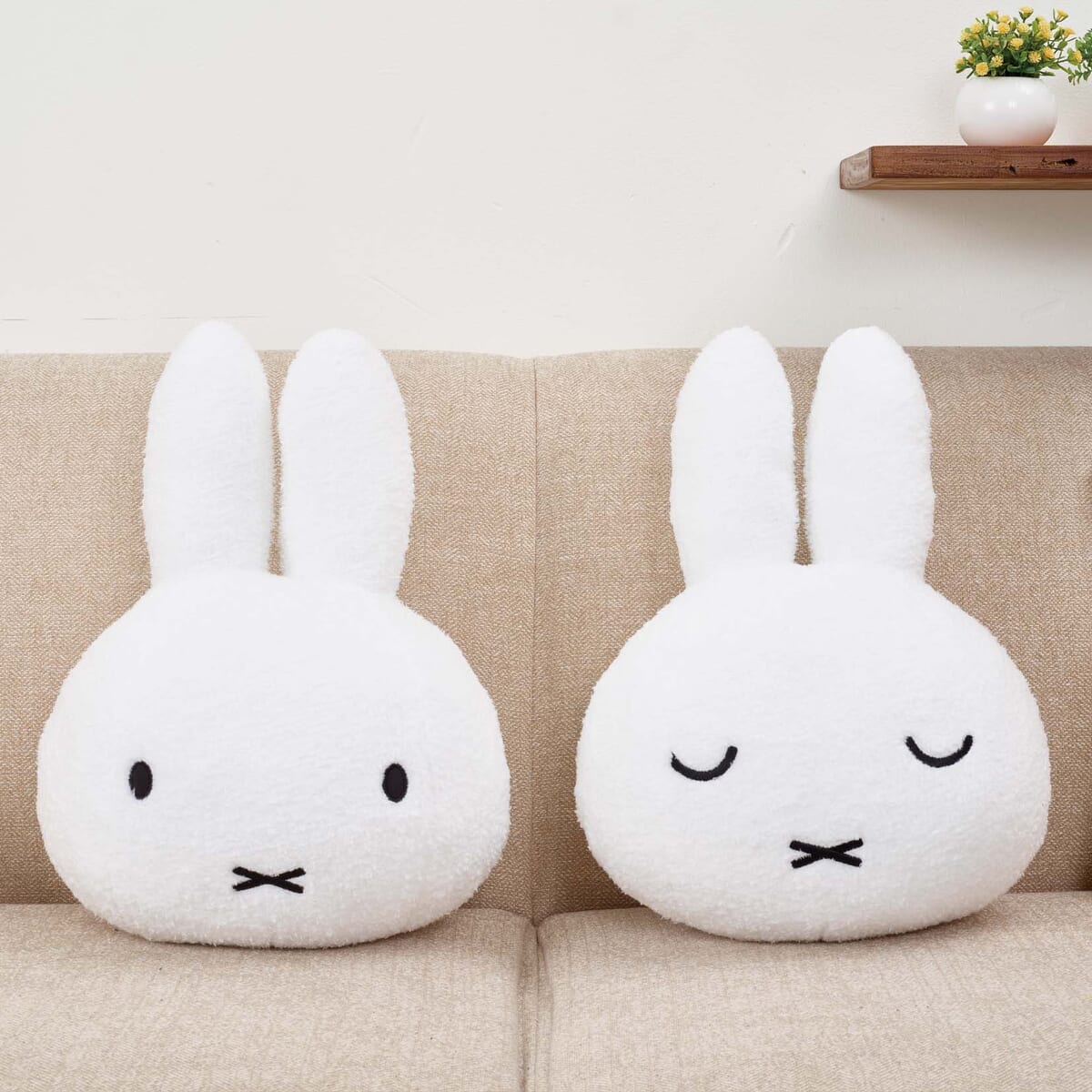 かわいらしい表情をした「ミッフィー」のフェイスクッション。