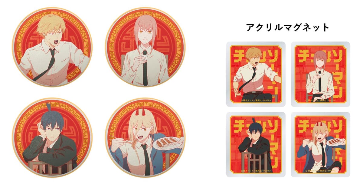 ナンジャタウン園内にあるご当地餃子の食べ比べができる「ナンジャ餃子スタジアム」をモチーフに、『チェンソーマン』のキャラクター「デンジ」「マキマ」「早川アキ」「パワー」の4人が餃子の並ぶテーブルを囲む姿の描き下ろしイラストとなって登場します。