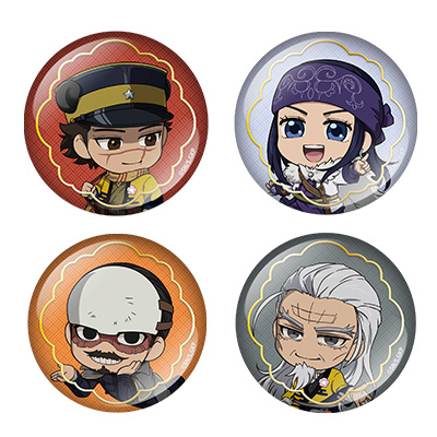 ちびキャラにデフォルメされたイラストの缶バッジ。