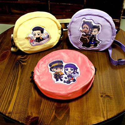 遊園地で遊ぶちびキャライラストが使われたショルダーポーチ。