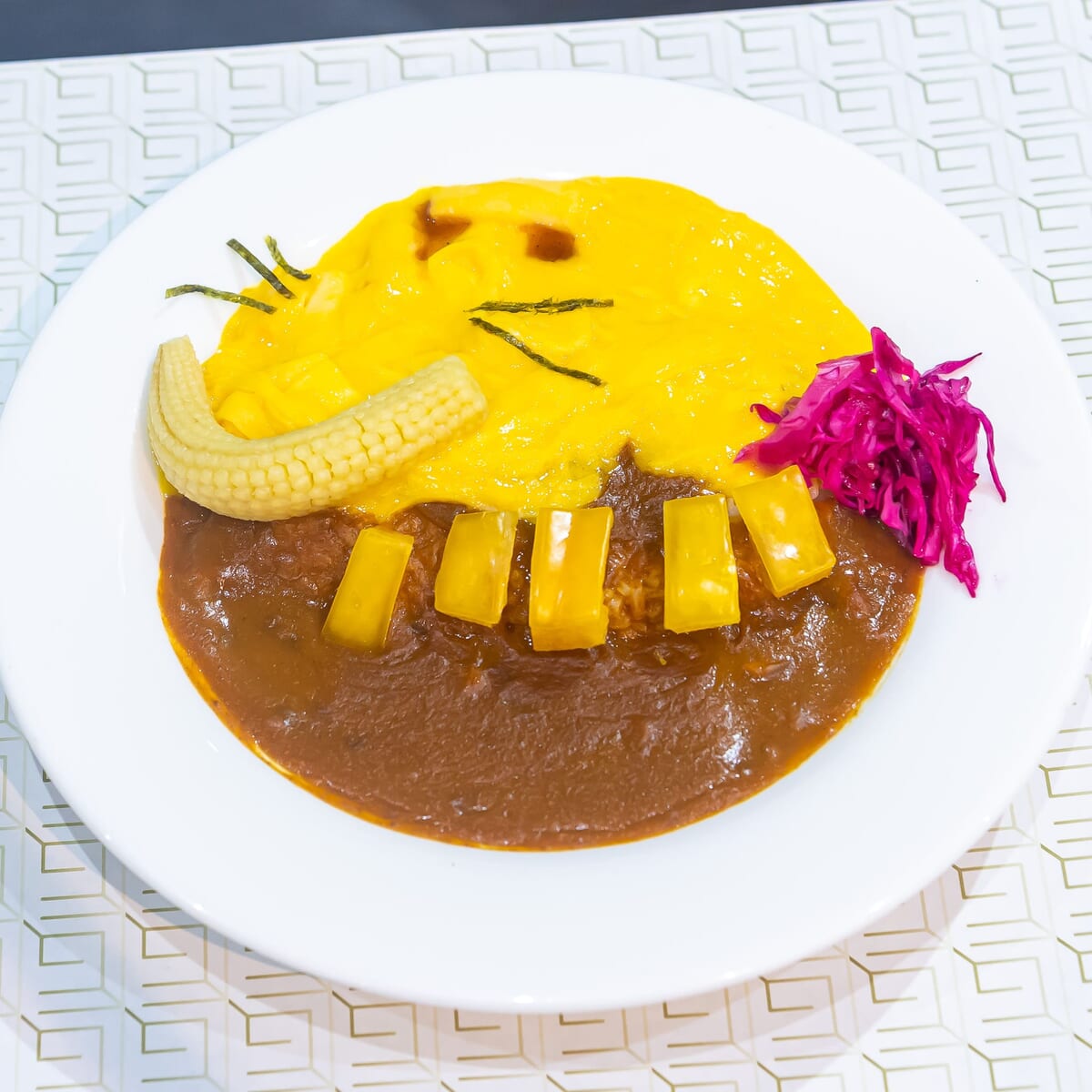 たまごをのせたカレーにヤングコーンやパプリカ、「ネコバス」の歯や足などをイメージした食材をトッピングされています。