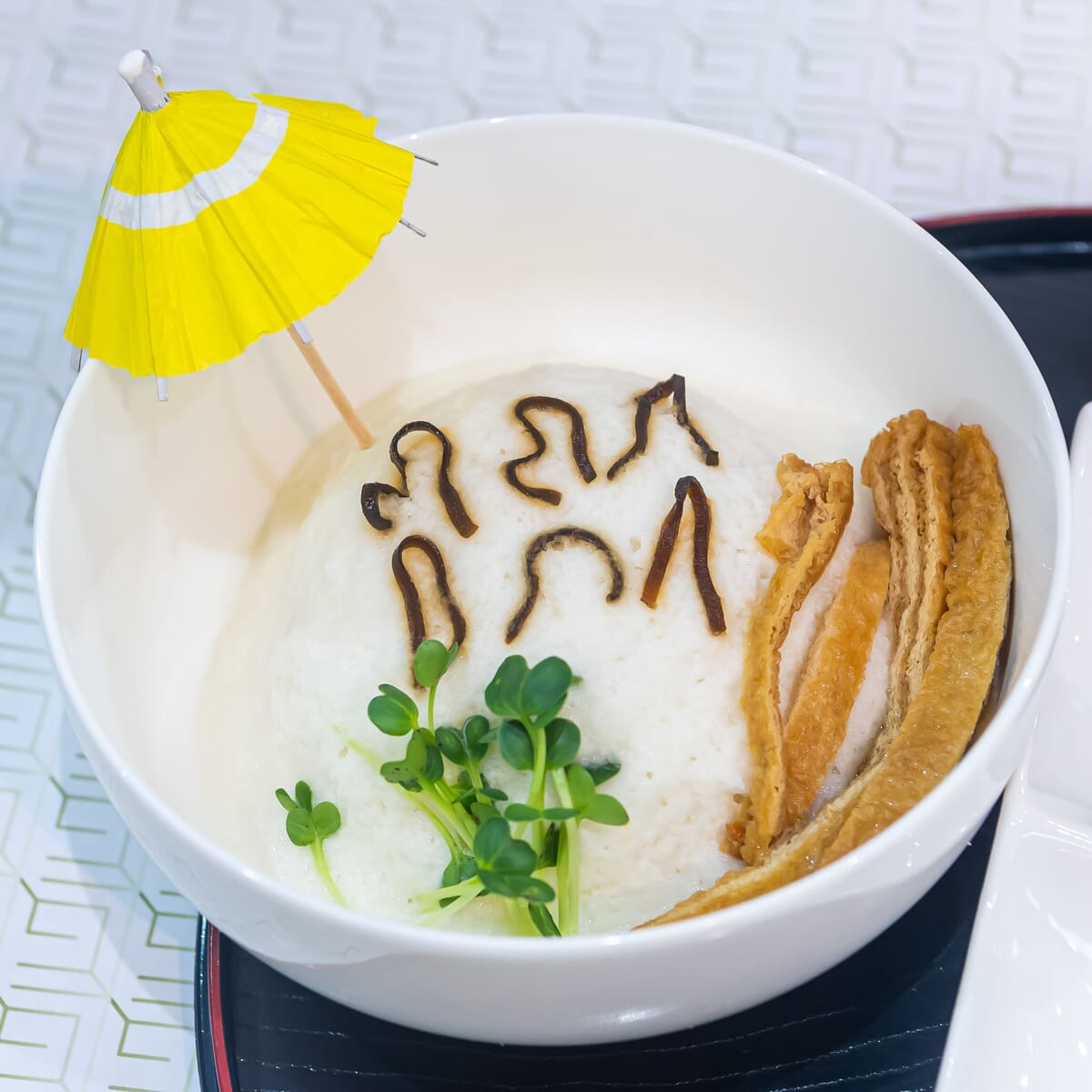 海苔を丼にトッピングすると、あのキャラクターが現れます。