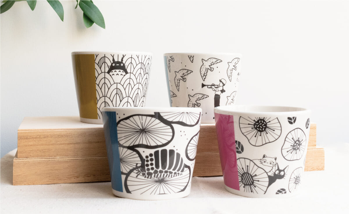 スタジオジブリの作品に登場するキャラクターやワンシーンなどが描かれたカップ。