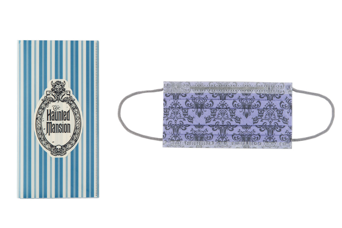 ホーンテッドマンションのおなじみの壁紙をモチーフにしたデザインのマスクとマスクケース。