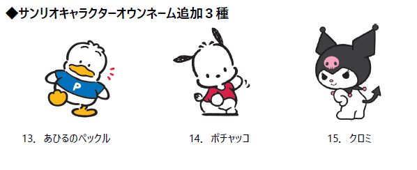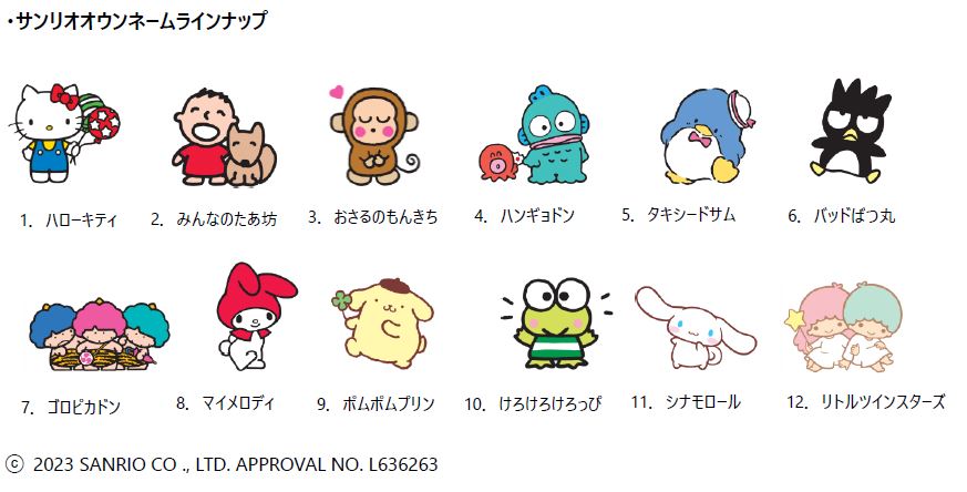 サンリオキャラクターオウンネーム追加キャラクター