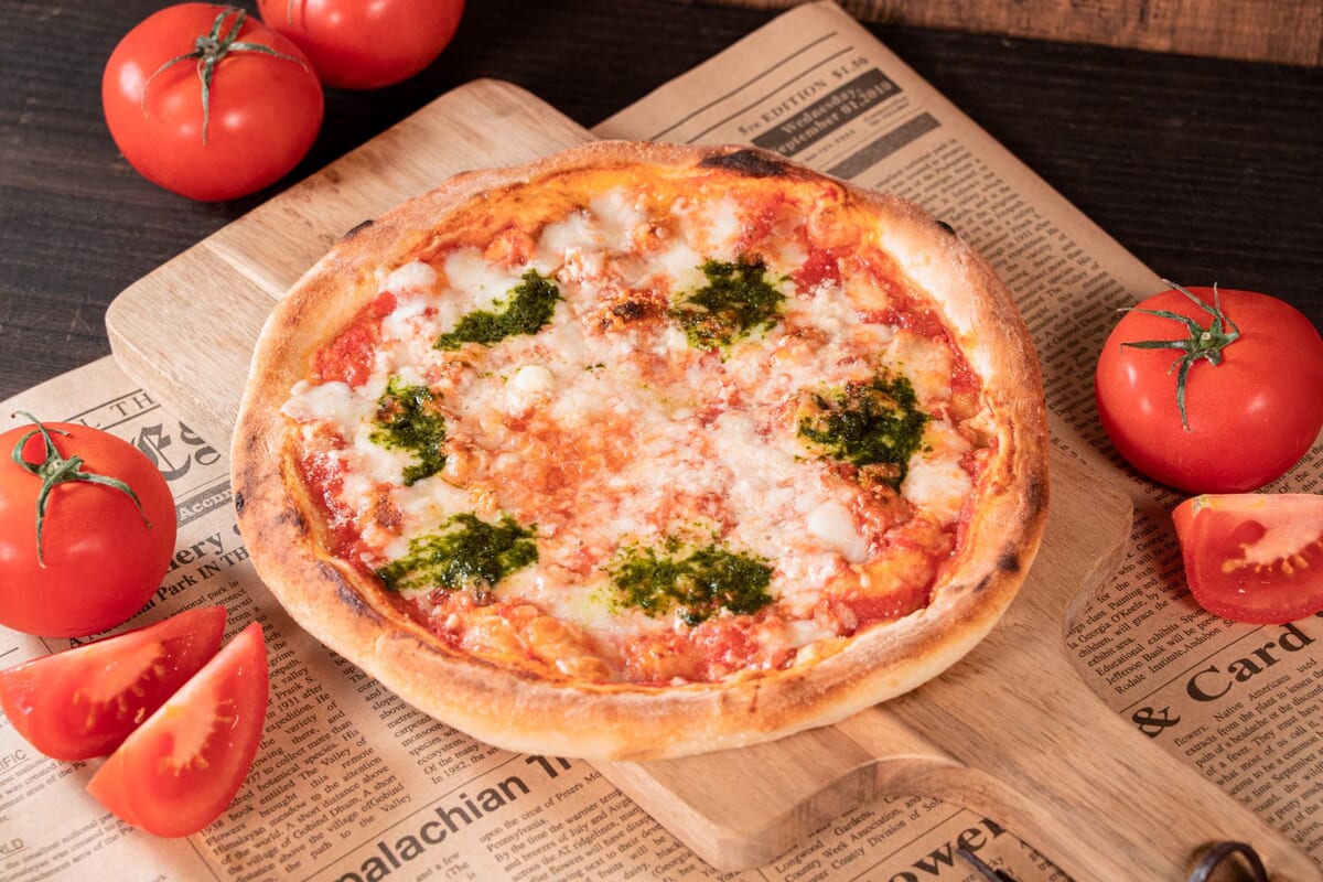 こだわりの生地の上には、イタリア産トマトを使用した生地の味わいを引き立てるやや酸味のある味わいのトマトソースや、トマトソースの酸味をほどよく中和し、まろやかなコクを楽しめる濃厚な味わいの水牛モッツァレラ、風味豊かなバジルソースなどがトッピングされています☆