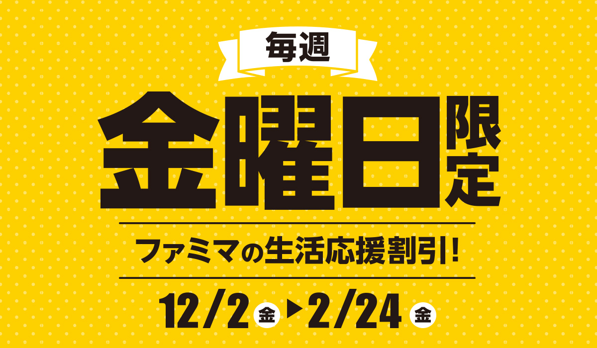 お得にお買い物が楽しめる、毎週金曜日限定の「ファミマの生活応援割引!」を開催中!