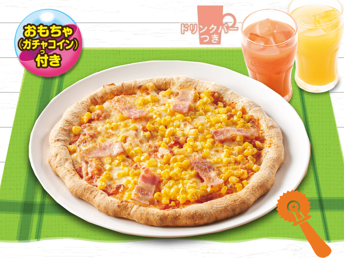 ・ラッキージュニアセット たっぷりコーンとベーコンのピザ(おこさまドリンクバーつき) 989円(税込)