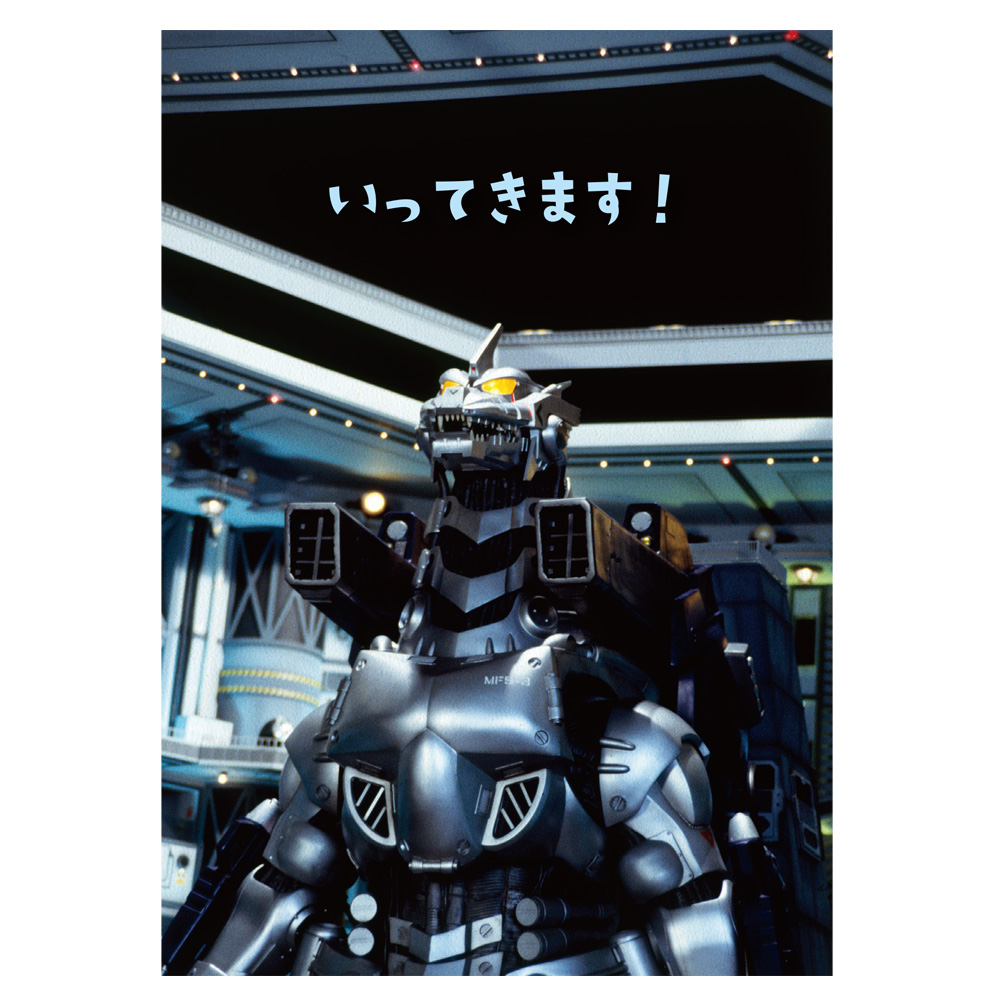 「いってきます!」と、今まさに出動しようとする「メカゴジラ」のユニークなデザイン。