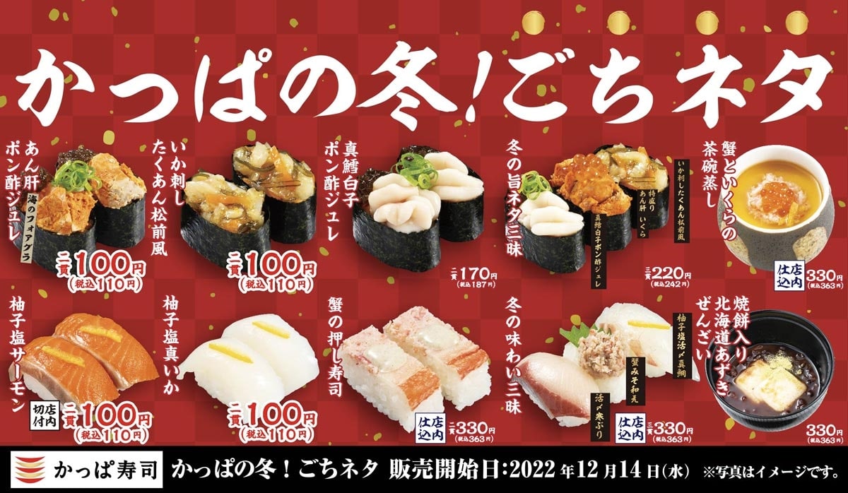 冬のかっぱ寿司には欠かせない、冬ネタを楽しめる「かっぱの冬!ごちネタ」も同時に開催中。