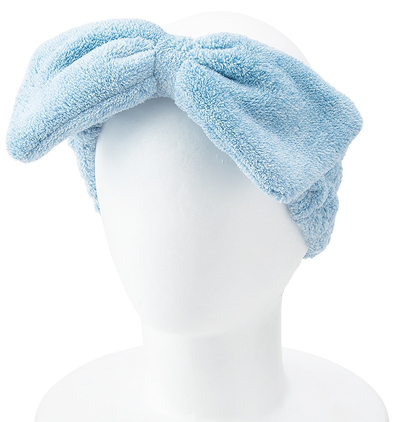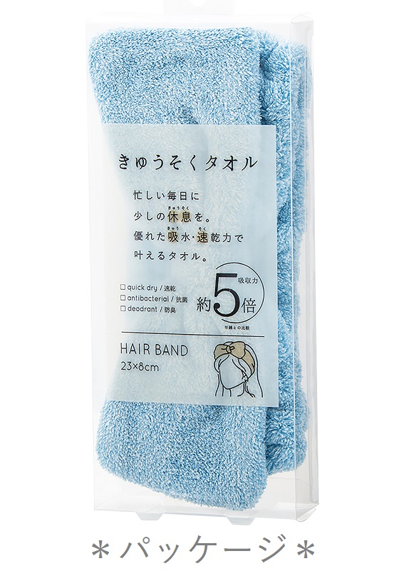 ブルーの「きゅうそくタオル ヘアバンド」は、スッキリとした印象。