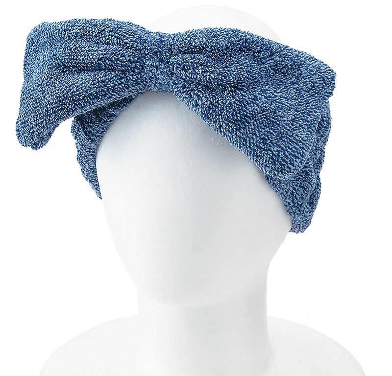 ネイビーの「きゅうそくタオル ヘアバンド」は、大人っぽい雰囲気に。