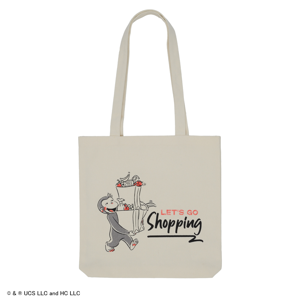 たくさんのお買い物をする「ジョージ」のイラストがかわいいトートバッグ。