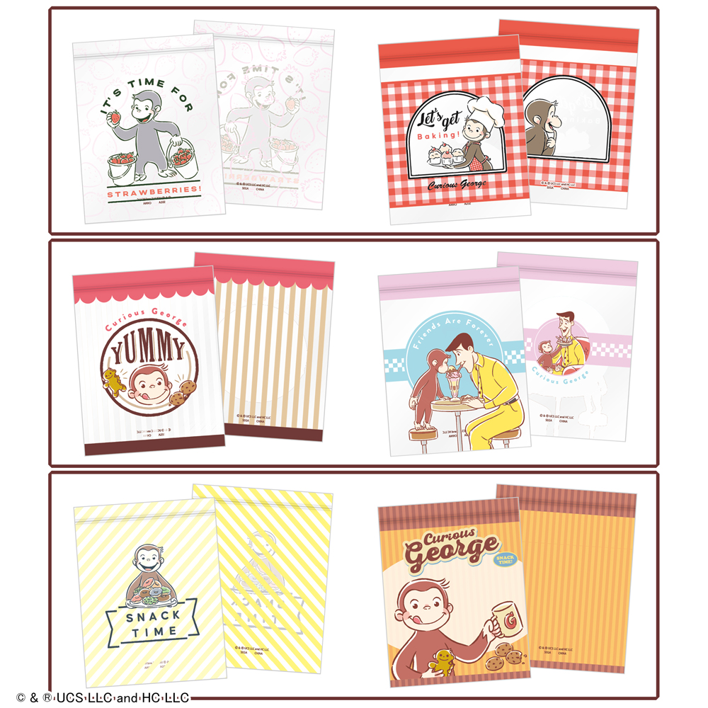 「ジョージ」のかわいらしい姿が描かれた、おしゃれなジッパーバッグのセット。