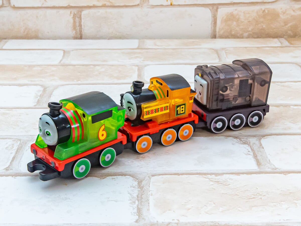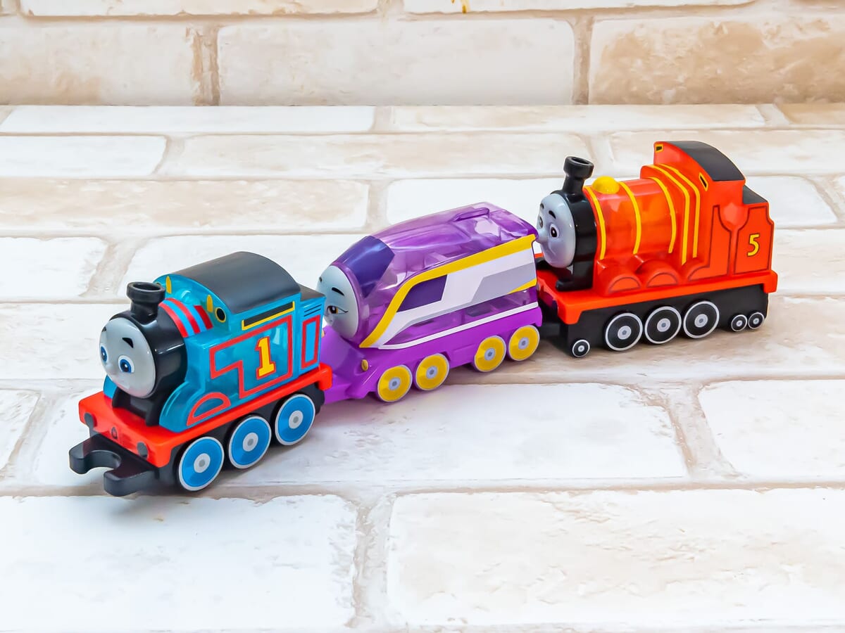 クリア素材の車体が特徴の「トーマス」と愉快な仲間たちのおもちゃ。